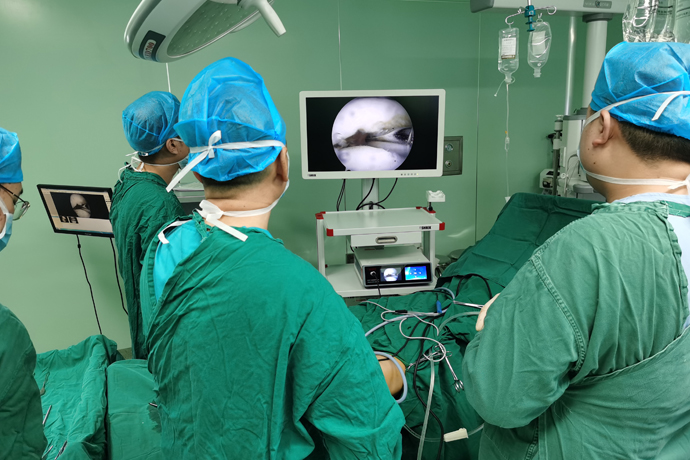 The surgery adopts a conventional approach, but appropriate adjustments can be made to facilitate the operation. When establishing the second entrance, use a lumbar puncture needle to test the meniscus injury site and observe whether the instrument is easy to reach. For tears of the posterior horn of the medial meniscus, since the medial femoral condyle is larger and the curvature of the medial tibial plateau is deeper, the medial approach should be set lower to make it easier for instruments to treat the lesion, while the lateral approach should be set higher to enable more comprehensive arthroscopic observation. During the operation, it is necessary to exchange the arthroscope and instrument approaches at any time, observe the meniscus injury site from different angles, and use instruments to treat the diseased site.